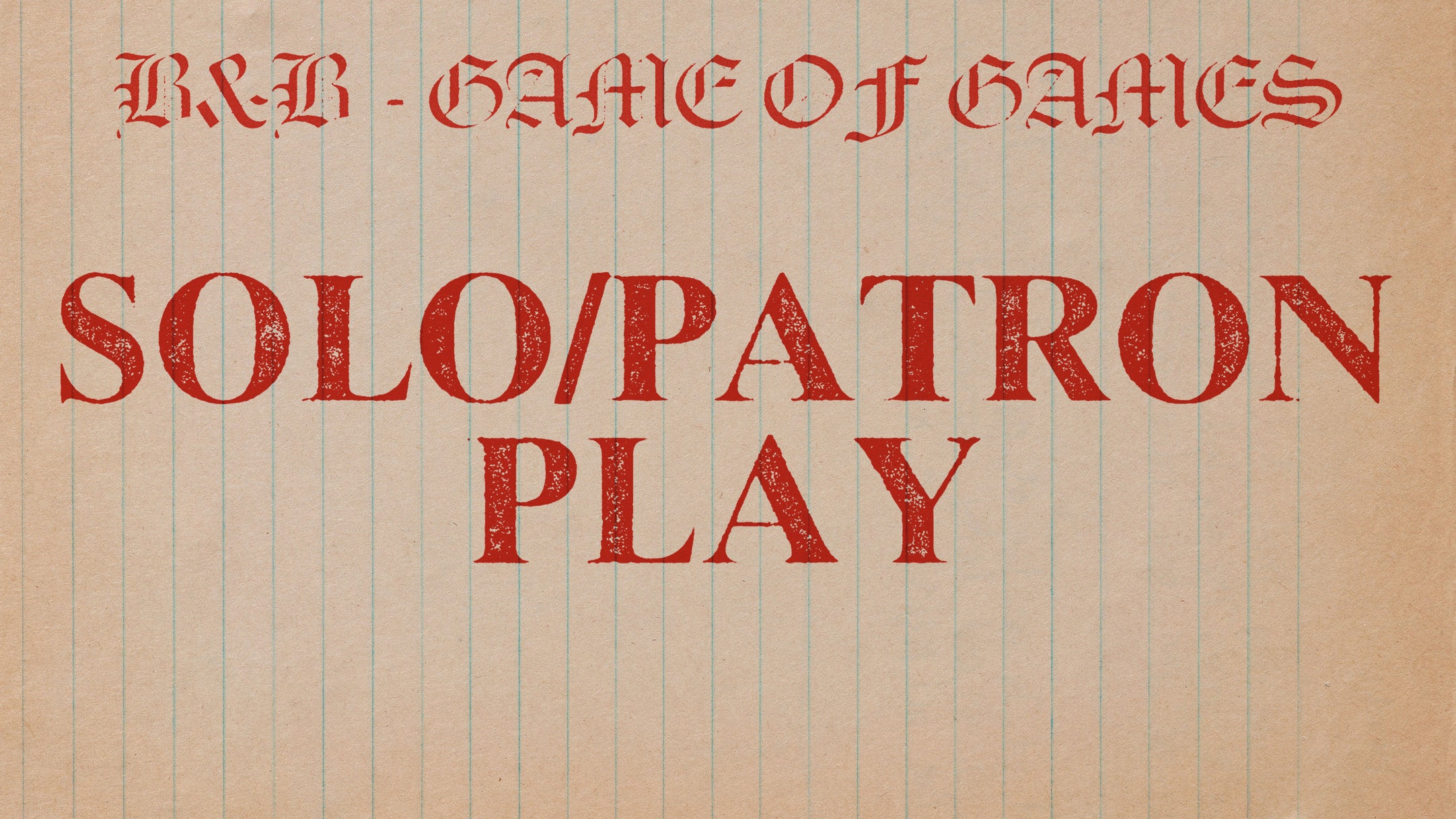 Click here to see the FormThis form is used in Solo-Play and/or Patron play. Playing B&B solo can be a lot of fun. In my home campaign we use it all the time. Since we have 4 Referees and well over 30 players who each have 2-6 characters, it can be hard to run games all the time. To help with this we allow players to Solo-Play.